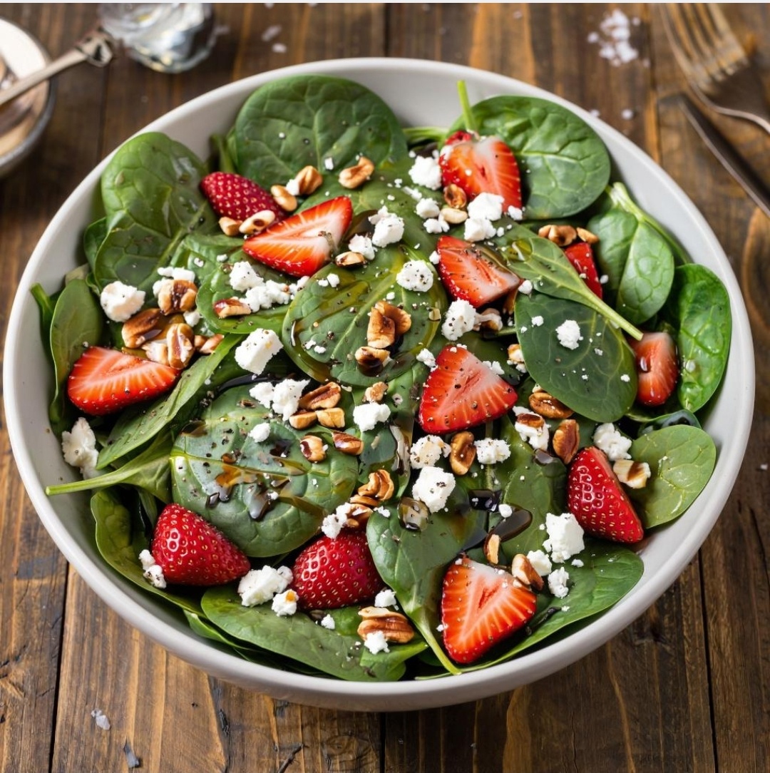 Когда за окном расцветает лето, так хочется свежих красок и лёгких вкусов! Мой фаворит в это время года — нежный салат с клубникой, шпинатом и сыром фета. Он словно впитал в себя солнечное настроение: яркий, сочный и невероятно ароматный.