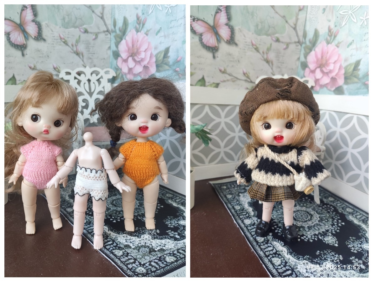 ну и еще разок покрасуемся, одежды у нас нет, натянулись только вязаные бодики, выкроек пока тоже нету, это дело мы тоже потихоньку со временем исправим ( если конечно не найдем что-то на просторах)
