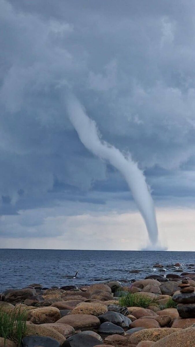 🌪 Водяной смерч взмыл в небо на карельских берегах Ладожского озера