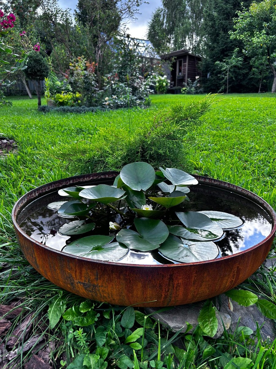 Любимая рубрика❤ Фото отзыв👍 Нимфея в чаше от Кью, живет, растёт и цветёт! Это радостная радость😍 Спасибо Елене, нашей заказчице, за успешный эксперимент🙏 Чаша 70 см в диаметре, это самая маленькая из наших чаш. Нимфея одного из карликовых сортов. Попросила уточнить, если удастся, то сообщу отдельным постом💯 Заказать чаши можно тут (бывают разные размеры) https://qgarden.ru/product/chasha-tri-stikhii