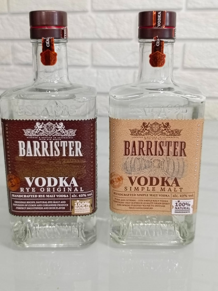 Всем привет! Нашлось время описать водки особые Barrister, которые пробовал еще в мае, Rye Original (ржаная оригинальная) и Simple Malt (симпл молт (солодовая)). PS знаю, что еще есть гречишная, но в момент приобретения, в магазине ее не было. Ни в коем случае мои отзывы не претендуют на безапелляционную объективность. Это только мое личное мнение о конкретном напитке, а оценка выражает только мое отношение к нему. BARRISTER VODKA - линейка водок особых появилась в 2023 году благодаря компании ЛАДОГА – создателю легендарной водки ЦАРСКАЯ и джинов № 1 в РОССИИ BARRISTER. Многолетний опыт команды мастеров–винокуров и технологов позволил создать уникальные по своим свойствам продукты и расширить предложение бренда BARRISTER в новом направлении. Состав: вода питьевая исправленная, спирт этиловый ректификованный «Люкс» зерновой солодовый, настой ячменного солода, ароматные спирты можжевеловой ягоды, ячменного солода, дистиллят зерновой солодовый. Цвет классический водочный, прозрачный. Аром