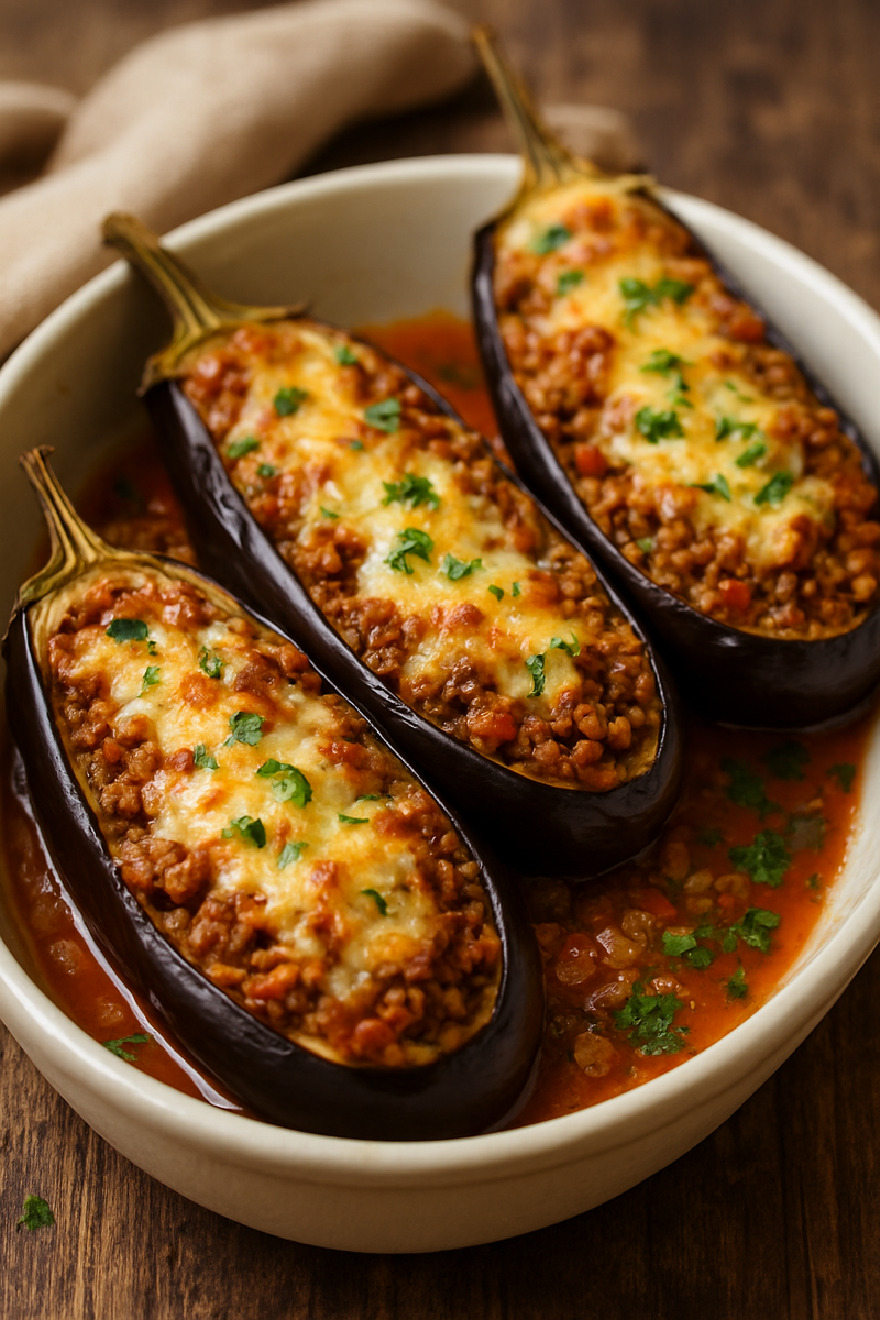 Рецепт хорош тем, что легко адаптируется: он одинаково вкусен с мясным фаршем, курицей или растительной альтернативой. А при желании — может стать диетическим или вегетарианским вариантом. Совет: Баклажаны можно предварительно запечь (10 минут при 180°C), чтобы они стали мягче и быстрее готовились. Лайфхак: Можно приготовить начинку заранее и хранить в холодильнике до 2 дней. Замените фарш на обжаренные грибы, чечевицу, нут или соевый фарш. Используйте куриный фарш и запекайте без сыра. Можно исключить масло — тушите всё на воде. Не вырезайте серединку — просто нарежьте баклажаны кружками, выложите слоями с начинкой и запекайте как «овощную лазанью». Можно заморозить заготовки в сыром виде и запекать по мере необходимости. Или наоборот — заморозить уже готовое блюдо. А вы пробовали фаршированные баклажаны? Какие начинки нравятся вам больше — мясные или овощные? Делитесь своими идеями и любимыми вариантами в комментариях — возможно, именно ваш рецепт вдохновит кого-то попробовать н
