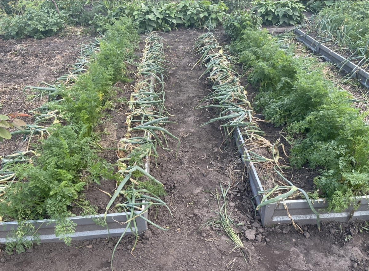 Выкопан чеснок. Убран лук. Зелень давно переработана. Грядки не просто оставляю в покое. Этого мало. У меня стационарные грядки. Они требуют особого ухода. После уборки урожая пустующие грядки подвергаются разрушительному воздействию окружающей среды. Почва уплотняется, теряет питательные вещества. Сорняки тут же начинают активно прорастать, потребляя остатки питательных веществ. Если все оставить так, как есть, то весной будет тот еще квест взрыхлить эту грядку. Проверено на личном опыте. У нас в деревне земля осенью или весной вспахивается единым полотном. Все овощи сеются друг за другом. При такой организации посевов после уборки ранних культур место просто пустовало. В первый сезон, когда мы установили стационарные грядки, я также поступила. Весной руки от плеч отстали, пока взрыхлила семь грядок.