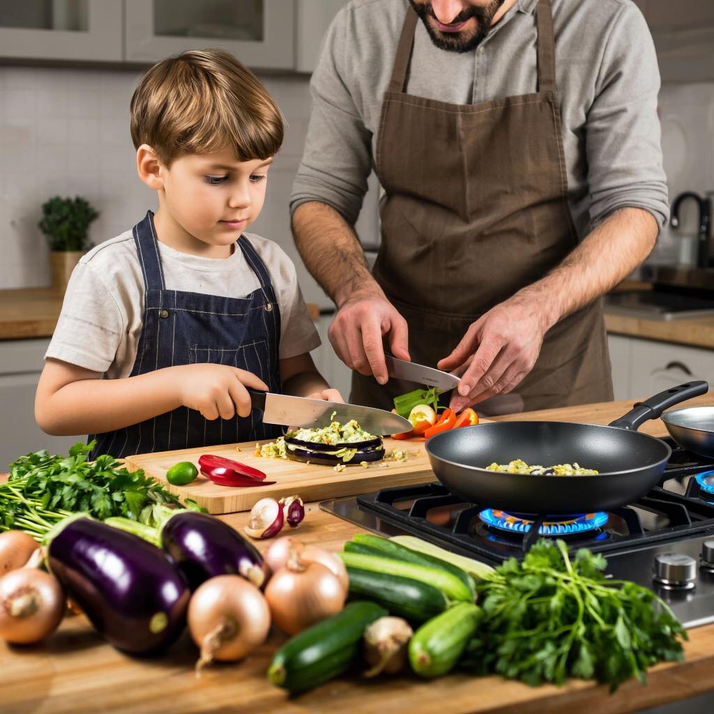 Потому что научиться готовить его могут только зрелые, понимающие жизнь мужики. Естественно блюдо он готовил острым, я бы сказал максимально острым. И не блюдо это вовсе, а мировая закуска. Икра должна кушаться горячей. Потом остывшей. Но всегда в хорошей компании. Условия приготовления жесткие, и всегда одинаковые. Рано утром все покупки делаются на рынке. Громко, сообщая всем вокруг, для чего ты покупаешь: синеньких, моркови средних размеров, салатный лук, кабачки и литровую бутылку масла. А ещё мощную головку чеснока урожая этого года и пачку крупной соли. И важно не забыть прикупить свежей зелени. Уже дома, все пригоняются из кухни. И на 2 часа при громко включенном приемнике овощи моются и чистится от кожуры, а потом готовится так. Лук режется и пассируется с натертой морковью. Не мелко нарезанные баклажаны отправляют