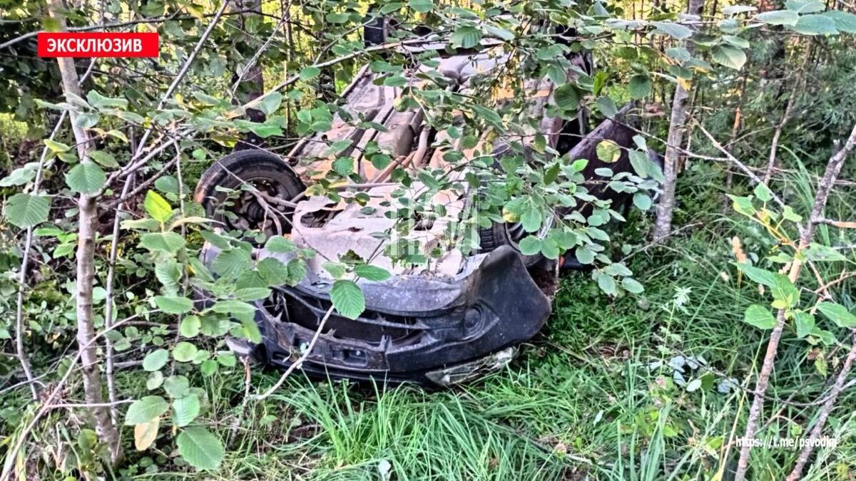 В Псковской области автомобиль Lada Granta съехал с дороги и опрокинулся