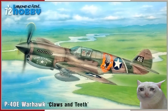 На такой оптимистичной ноте, наконец, дошло дело и до модели. При всём богатстве выбора, пришлось остановиться на варианте, который в личном предпочтении вообще был на одном из последних мест. Таковым угораздило стать P-40E из 9-ой эскадрильи 49-ой истребительной группы (9th FS, 49th FG) лейтенанта Эндрю Рейнольдса времён посильной защиты Дарвина (не автора теорий про бибизянов, а города в Австралии) в 1942 году.