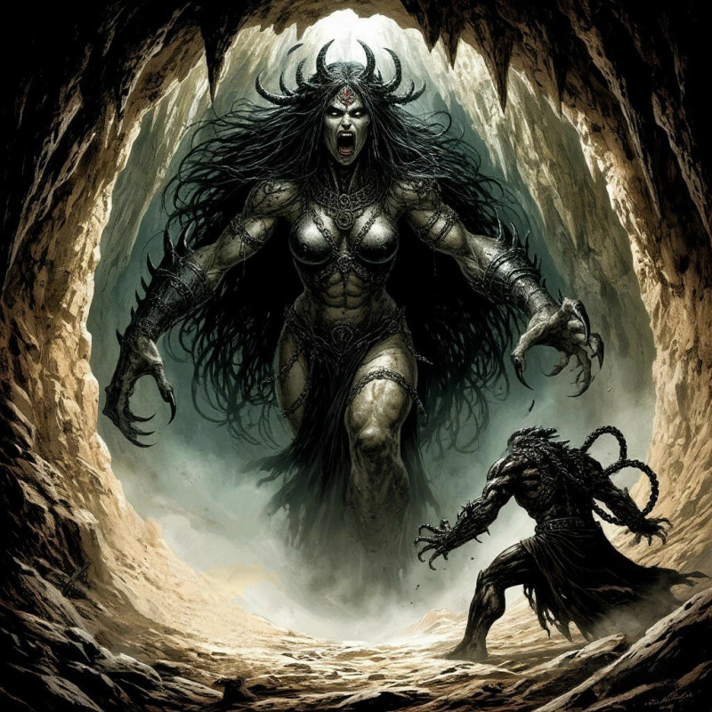 Солнце серьезно ранило Анахту, но не убило ее. Она не любила свет, он вызывал боль, но не был для нее смертелен, иначе за долгие эпохи ее существования, нашелся хотя бы один колдун, человеческой, или иной расы, который бы расправился с ней при помощи небесного светила. Подобные попытки случались, и не единожды, но все они завершились для недальновидных чародеев одинаково плачевно. Однако сейчас угроза была реальной, и осознание этого придало порождению Тени дополнительные силы. Она так отчаянно рванулась из своей каменной ловушки, что прочная скала не выдержала, на ее поверхности проступила, быстро увеличиваясь в размерах, сеть глубоких трещин. Богиня собиралась вырваться на свободу и отомстить всем - сковавшим ее ангелам, Тому, чьей тенью она являлась, но в первую очередь – людям. А потом сверху, сквозь отверстие в куполе, на злую богиню что-то прыгнуло.