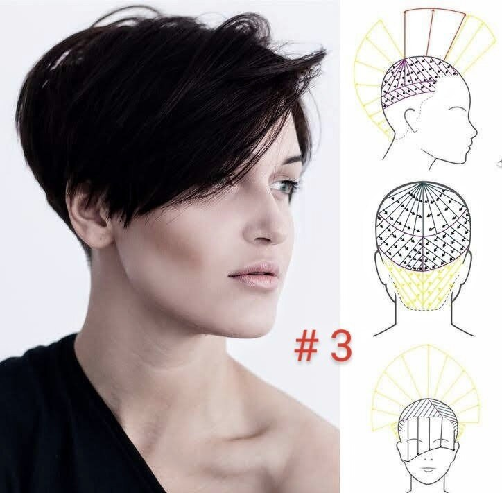 Если вы ищете короткую стрижку с характером, но не хотите терять женственность, воздушность и визуальную лёгкость — присмотритесь к этому варианту Пикси. Особенно если вы обладательница мягкого, круглого или полного лица. Эта форма буквально «вытягивает» и подчёркивает черты. Что делает её особенной? Несведённые зоны. Это не ошибка мастера — это продуманная техника. Верхняя часть (фронтально-теменная зона) прострижена отдельно от затылка и висков. За счёт этого сохраняется максимальная масса в верхней части головы, и создаётся эффект приподнятости, объёма и движения. 🟢 ПРО СПРЕЙ С КЕРАТИНОМ ЗДЕСЬ На схеме выше видно: