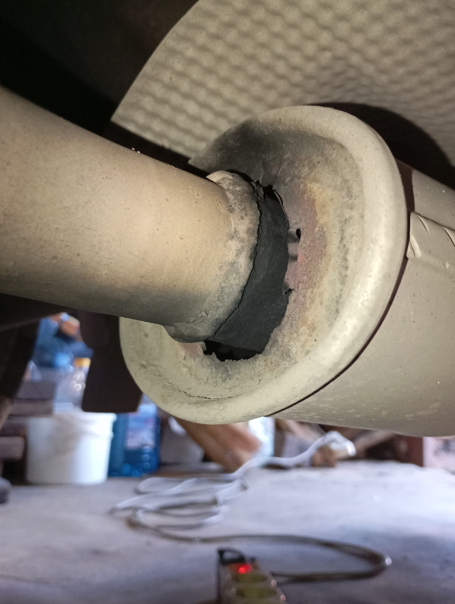 Рано или поздно все элементы выпускной системы автомобиля ржавеют и рассыпаются, вот и у нас на Дастере прогорел резонатор. Звук при перегазовке стал напоминать прямоточный, в общем езда стала некомфортной. Изучение просторов интернета привело к простому решению. Менять будем на универсальный резонатор фирмы CBD, код RUAL005, он ставится на хомуты без сварки. Измерения показали, что для замены нужно срезать старый резонатор почти под корень с обеих сторон (универсальный короче). Вот фото для наглядности после срезки. Напуск старой трубы нужен для установки резонатора под хомуты. Итак, подвешиваем трубу глушителя и старый резонатор к кузову, чтобы удобно было пилить болгаркой. Аккуратно отрезаем как можно ближе к корпусу. Далее снимаем старый и крепим новый элемент, используем герметик выпускной системы и два хомута на 48 мм. Перед установкой не забываем срезать заусенцы на старой трубе и почистить ее поверхность (у меня она не ржавая). Хомуты я смазал медной смазкой. После затяжки у