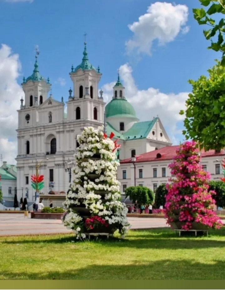 Мой любимый город Гродно - один из самых красивых городов в мире. Я горжусь, что проживаю в этом городе и могу насладиться его красотой. Особенно мой город красив летом, когда все вокруг распускается. А в этом году он особенно красив! Внизу протекает маленькая речушка , здесь плавают утки. Люди любят их подкармливать. И я неоднократно этим пользовалась. Они практически все ручные. Это фото было сделано поздно вечером, поэтому уток на нем не видно, они ушли на отдых. Это лавочка для влюблённых. На ней любят фотографироваться не только пары, но и все подряд. Наш город украшен красивыми яркими цветами. Полюбуйтесь, ну это очень красиво! Всё заграждения в цветах, прямо ковёр из цветов. Как красиво смотрится! Смотришь на все это и кажется, что ты находишься в какой-то сказке! А это фото бывшего корпуса университета. Здесь тоже любят фотографироваться. А вот какая красота, которая находится рядом с парком! Юбка из живых цветов! А это наш красивый скверик в центре горо