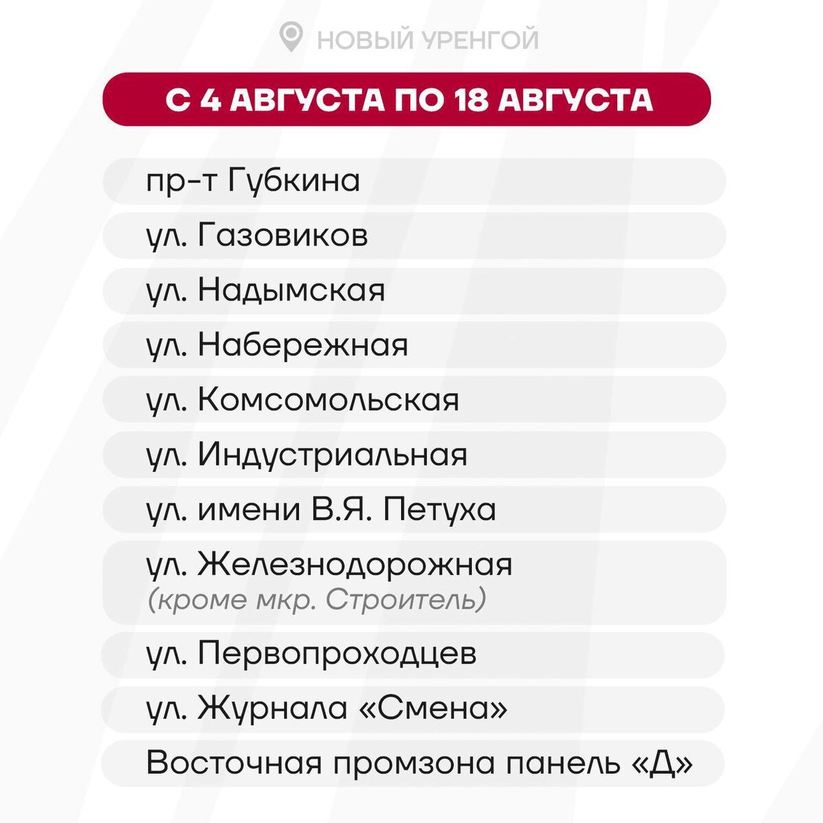 Напоминаем о последнем этапе отключения горячего водоснабжения в Новом Уренгое. Перерыв подачи ГВС составит 14 дней. Проведение профилактических работ необходимо для подготовки к безаварийной работе в осенне-зимний период.