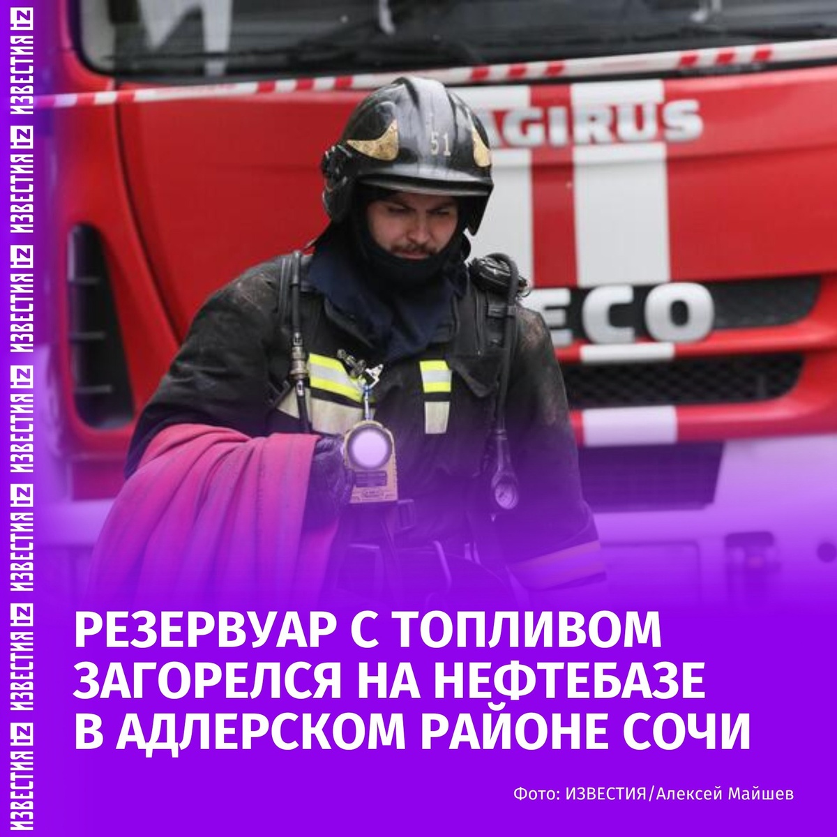 Возгорание резервуара с топливом произошло на нефтебазе в Адлерском районе Сочи из-за падения обломков БПЛА, заявил мэр Андрей Прошунин.