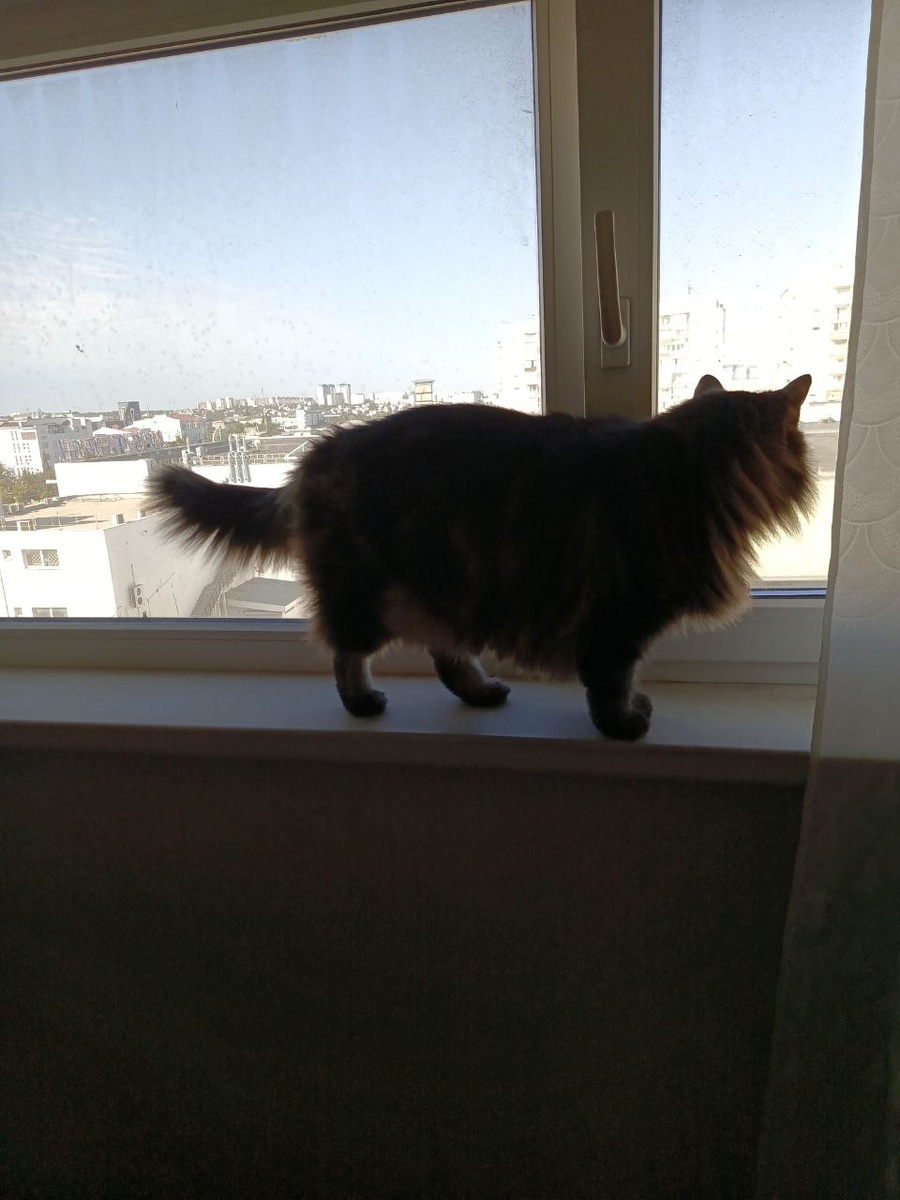 Всем привет! С вами Кузя Кусалочкин (он же царь Кузьма I). Сегодня я расскажу, почему получил по Ж. Утро началось в 5 часов. Мне захотелось кушать. Повезло, что мама хозяина сама в это время встала. Вот только кому именно из нас повезло — не знаю. Позавтракал, потом нужно было всё обойти, посмотреть в окошко: Это не то, что у нас, когда ощущается, будто сам на улице гуляю, тут очень высоко и необычно. Потом мама хозяина решила вынести мусор и совсем не учла, что со мной надо все двери быстро закрывать. Короче, пошёл я в подъезд гулять. Точнее, не просто гулял, а бегом побежал. Спустился на два этажа ниже и там остановился. Бежал бы я ещё дальше, но меня остановили цветочки, которые стояли в подъезде. А тут и мама хозяина подоспела. Бежала за мной, устала. Поймали меня, принесли домой и надавали по Ж. Я к такому обращению не привык! Царя и по Ж! Это неправильные методы. Ещё и поругали! Ой всё! Ушёл лежать под столом: Прикинулся, что я не живой. Мама хозяина поняла, что я очень обидел