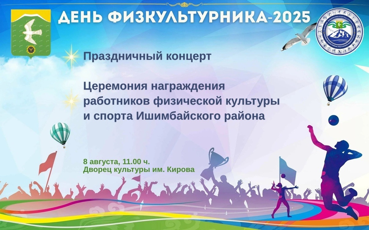 В ближайшую пятницу, 8 августа, в городе отпразднуют Всероссийский день физкультурника. Торжество состоится в Ишимбайском Дворце культуры. Начало – в 11 часов. Об этом сообщает местный спорткомитет. На празднике запланировано награждение лучших работников физкультуры и спорта муниципального района. Также пройдёт концерт с выступлением лучших исполнителей и ансамблей города. Не пропустите! 6+