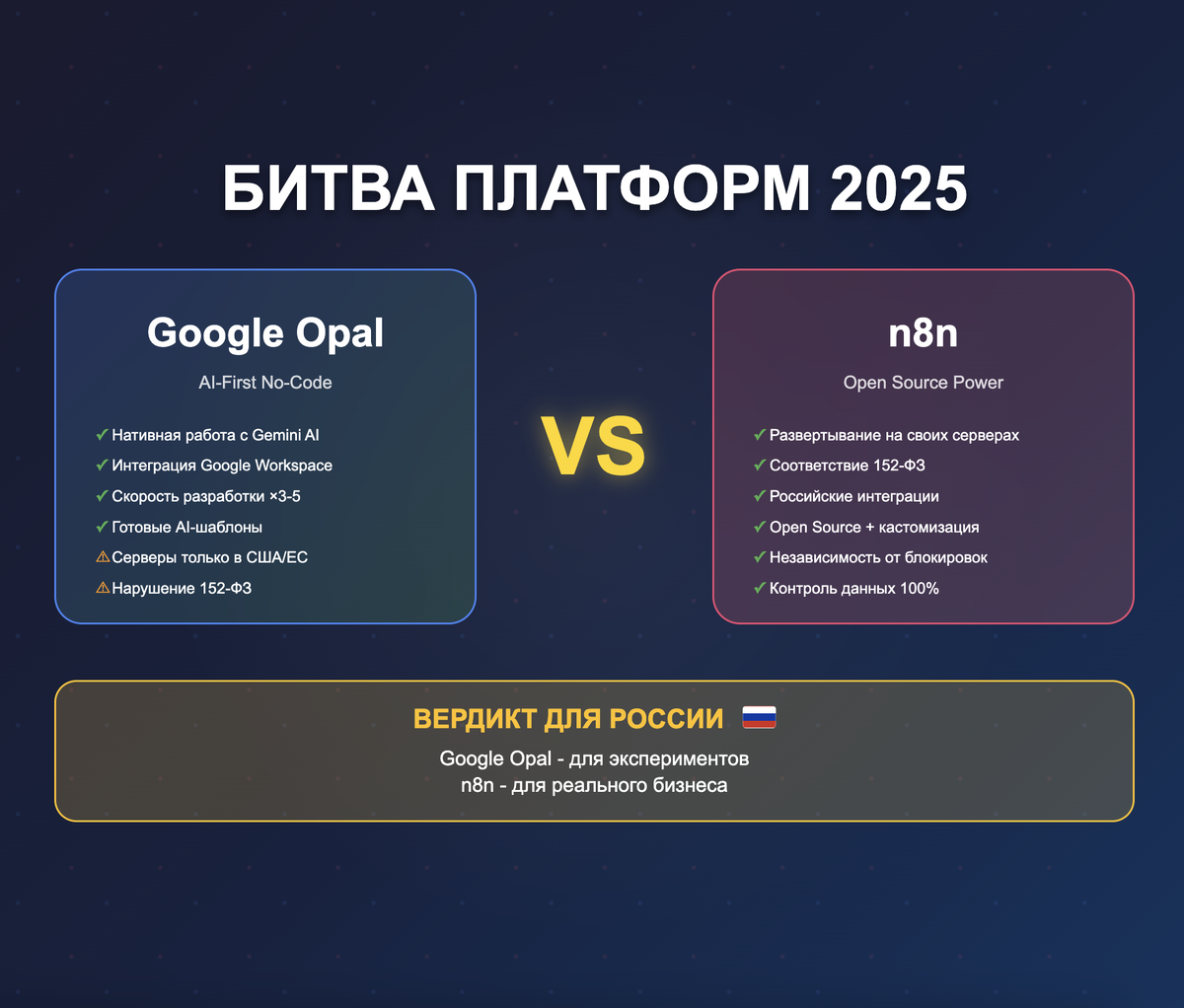 Google Opal против n8n: что выбрать для российского бизнеса в 2025 году