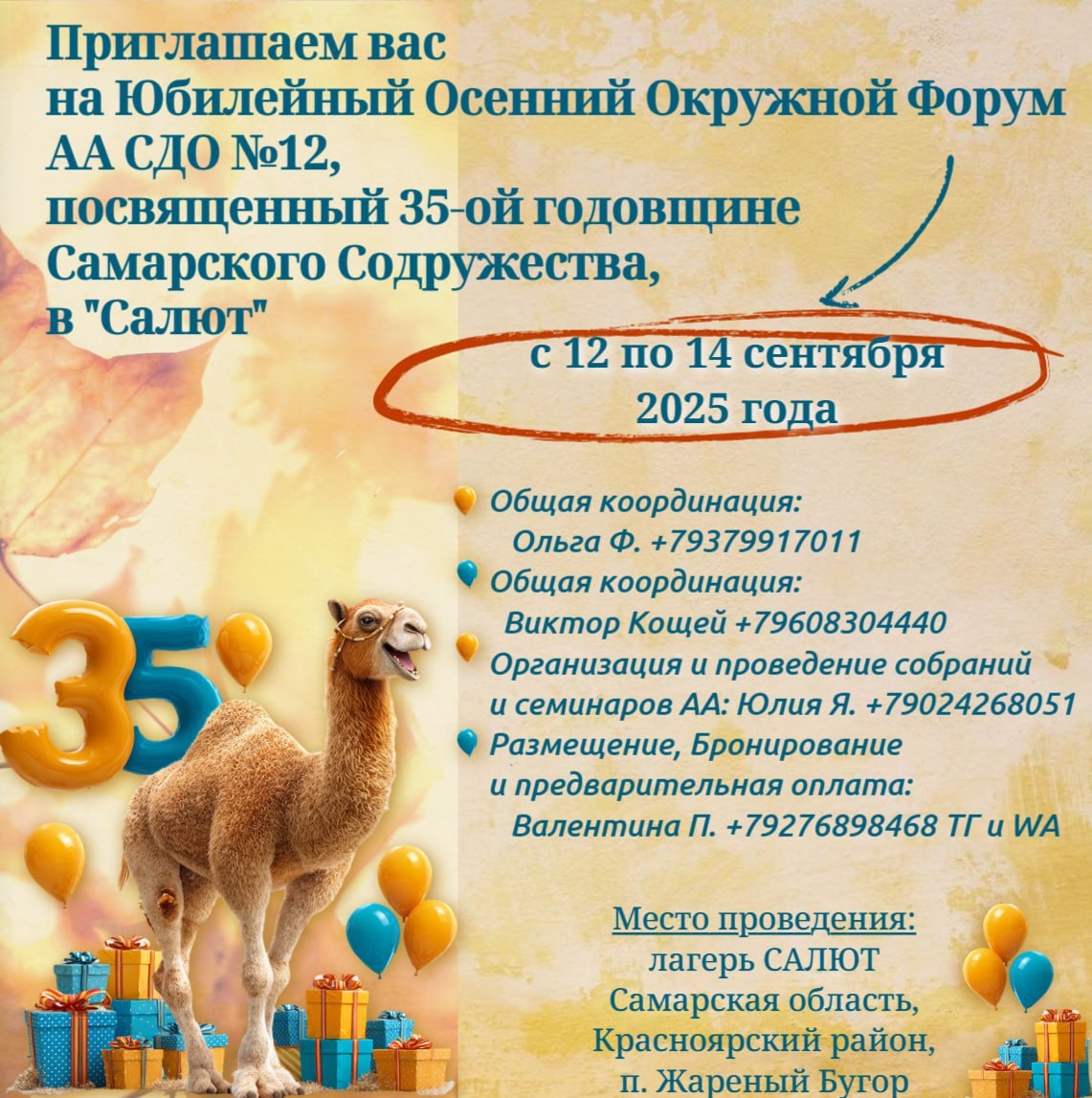 Добро пожаловать на юбилейный осенний окружной Форум АА СДО 12🤗