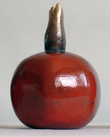 Керамический гранат, покрытый цветной глазурью. Внутри изделие полое, достаточно легкое. Благодаря своей понятной, минималистической форме является прекрасным интерьерным аксессуаром.