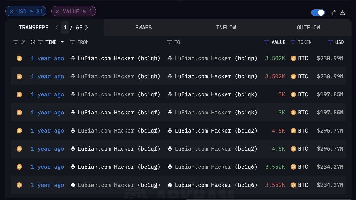 Π°ΠΊΠ΅ΡΠ° ΠΈΠ· LuBian, ΡΡΠΎΡΡΠ΅Π³ΠΎ Π·Π° ΠΊΡΡΠΏΠ½Π΅ΠΉΡΠ΅ΠΉ ΠΊΡΠ°ΠΆΠ΅ΠΉ ΠΊΡΠΈΠΏΡΠΎΠ²Π°Π»ΡΡΡ Π² ΠΈΡΡΠΎΡΠΈΠΈ. Π 2020 Π³ΠΎΠ΄Ρ Π±ΡΠ»ΠΎ ΡΠΊΡΠ°Π΄Π΅Π½ΠΎ Π±ΠΎΠ»Π΅Π΅ 127 426 BTC.