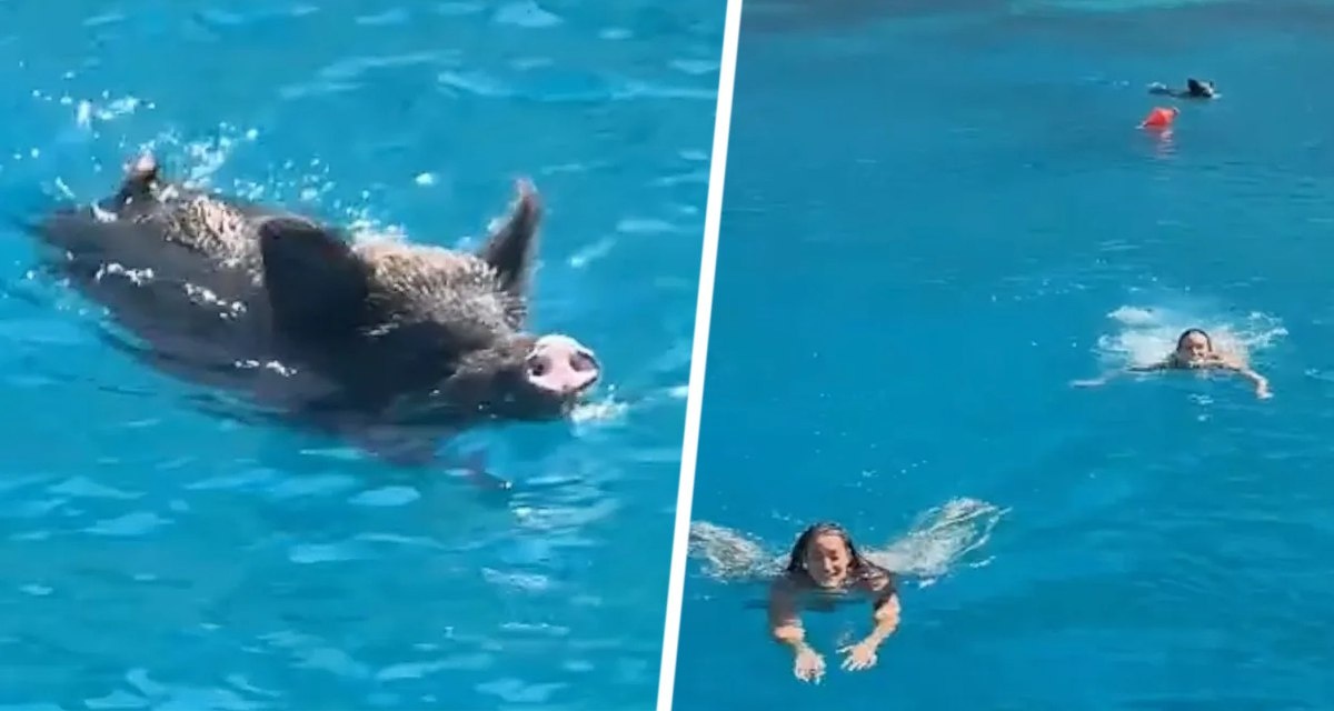 Нас преследует плывущая свинья! Хрюндель прыгнул в море и погнался за двумя туристками