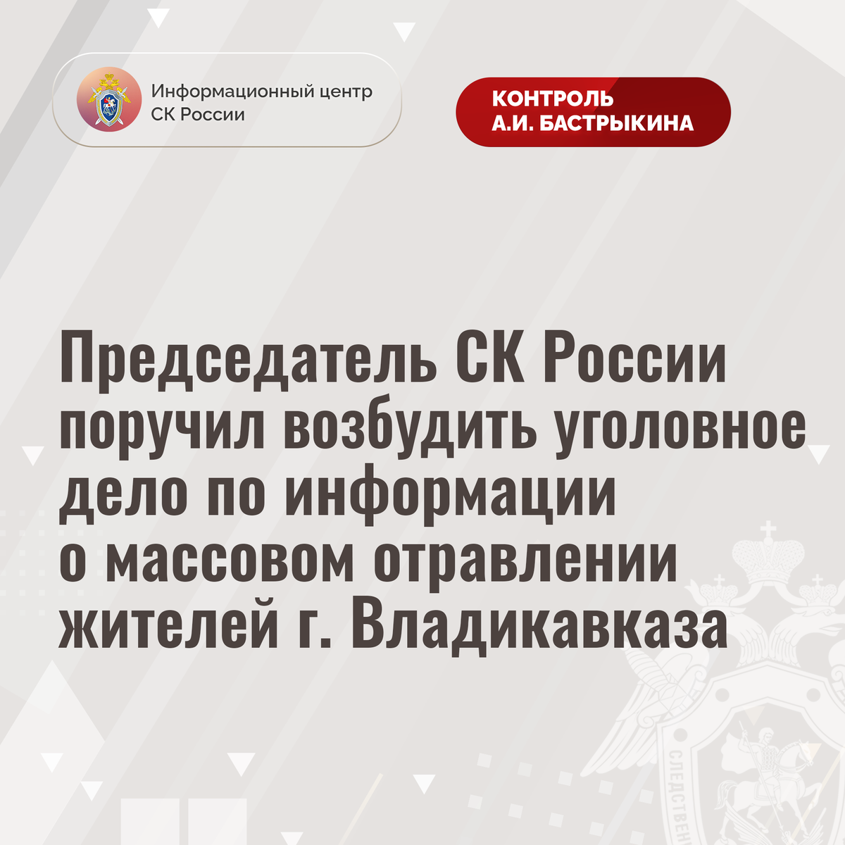 Председатель СК России поручил возбудить уголовное дело по информации о массовом отравлении жителей г. Владикавказа