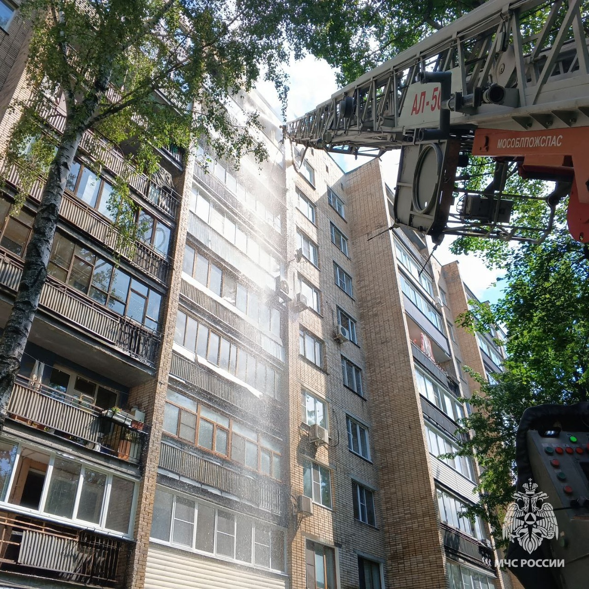 ❗❗❗ Сотрудники МЧС России спасли 4 человек на пожаре в Черноголовке В том числе ребёнка - по автолестнице. Ещё 20 человек эвакуировали из 9-этажного жилого дома №6 по Институтскому проспекту. На месте работают 26 пожарных и 6 единиц техники. ⭕пожар в квартире на 9 этаже локализован на 50 квадратных метрах 📌ДОП: ⭕ликвидировано открытое горение ⭕в горящей квартире обнаружен погибший ⭕пожар полностью ликвидирован @mchs50 Подписывайся на МЧС России в Telegram | MAX