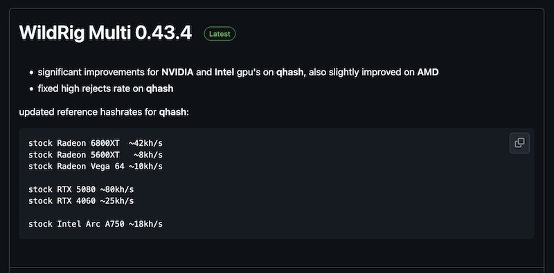 ⛏ WildRig Multi 0.43.4 добавляет поддержку майнинга QTC для AMD и Intel
