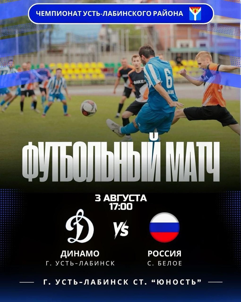 Матч в рамках чемпионата Усть-Лабинского района в 17 часов на стадионе «Юность».