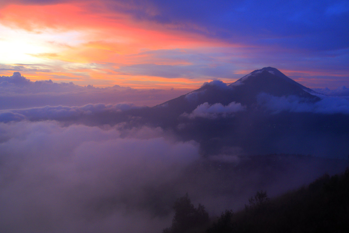 Кстати, туристы, отдыхающие на Бали, прогулку на Батур, рассматривают как элемент пляжного отдыха. Поэтому и одеваются соответственно - шортики и маечки. Обуваются примерно так же. Не соображая, что с одной стороны это почти экватор, а с другой стороны это горы и высота полтора километра. И жарко тут бывает, но не всегда. Про то что ждет их на Агунге я просто молчу. Все таки более 3000 метров - это не только высота, недостаток кислорода (для новичков), но и низкие температура.