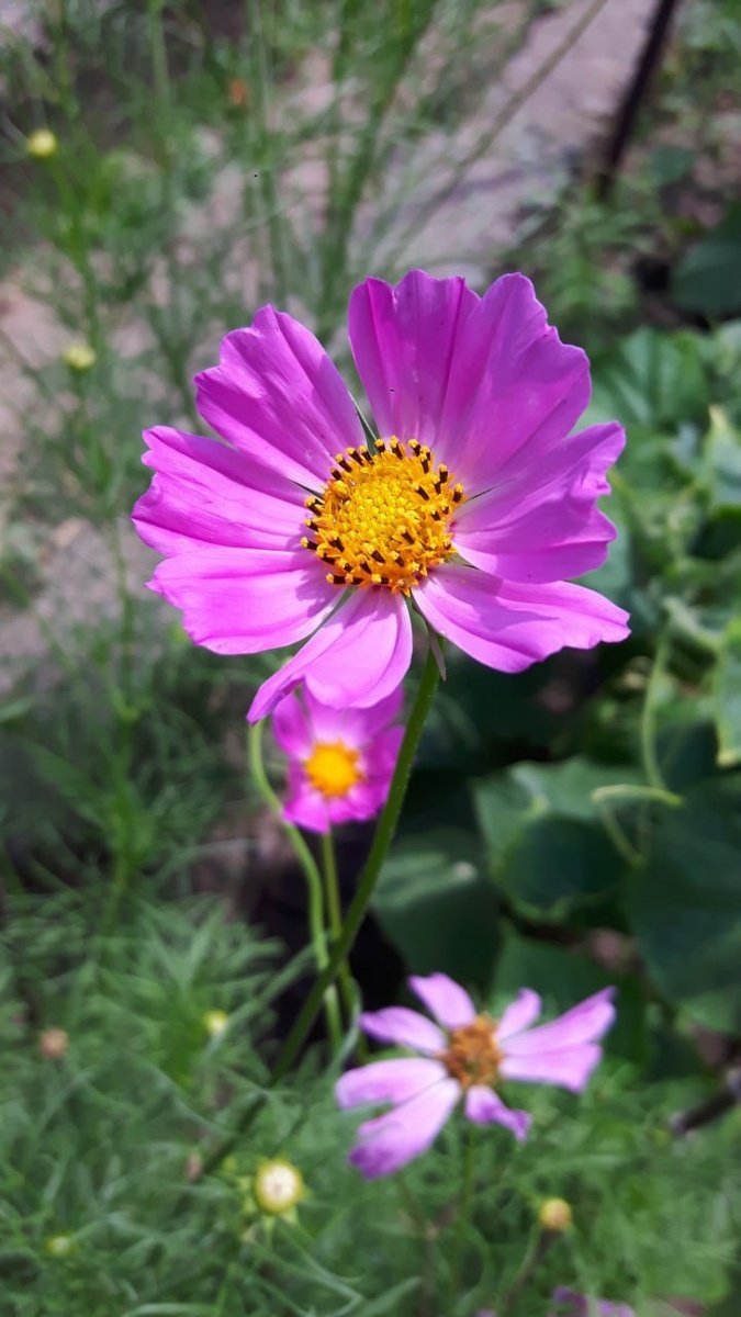 Космеи – звезды, ситцевым ковром, Растут на клумбах, в скверах, вдоль дорожек. Взгляни на них, воспоминаний сонм, Печалью тихой душу растревожит. Цветы из детства, бабушек цветы. При встрече с ними, сердце тихо стонет. В их нежных ликах столько теплоты, Как в бабушкиных, ласковых ладонях… Порошина Вера ❤️ если цените нежную красоту космеи *фото Sinulja Manusova