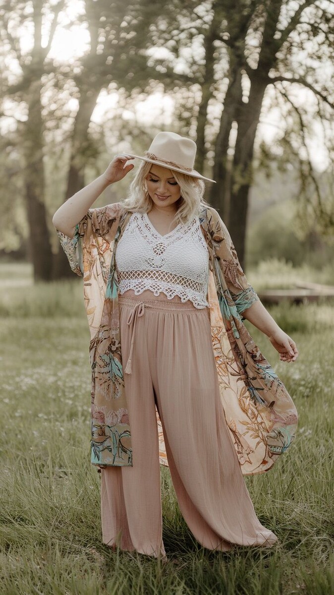 Привет-привет! Сегодня поговорим о самом важном — выборе идеального образа для летнего музыкального фестиваля. Если вы обладательница пышных форм, эта статья специально для вас! Летний музыкальный фестиваль — это возможность почувствовать себя свободной, яркой и уникальной. Здесь никто не смотрит косо на вашу фигуру, ведь главное — музыка, танцы и хорошее настроение. Но чтобы чувствовать себя уверенно среди толпы фанатов, ваш образ должен соответствовать нескольким критериям: 1. Комфорт — вы будете много двигаться, танцевать и гулять весь день. Поэтому выбирайте одежду из натуральных тканей, которая позволяет коже дышать. 2. Свобода движений — тесная одежда ограничивает ваши возможности наслаждаться танцами и ритмом музыки. 3. Яркость и индивидуальность — фестивали — идеальное место для экспериментов с образом. Будьте смелее, пробуйте новые стили и цвета. Теперь давайте рассмотрим конкретные идеи, которые подойдут девушкам плюс-сайз: Платья и сарафаны — идеальный выбор для жаркого лета