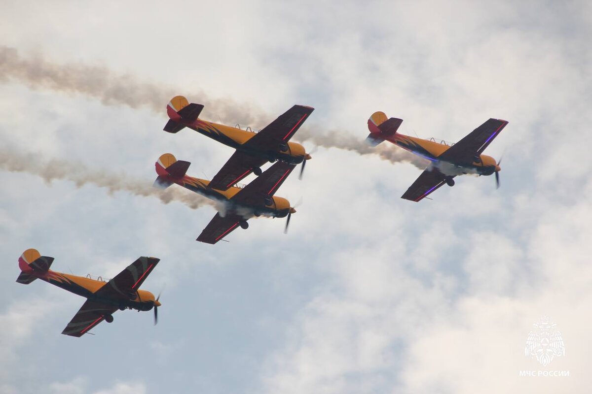 В субботу, 2 августа, в Новосибирске стартовал первый день авиационного фестиваля «Вива Авиа!» (0+). В этом году мероприятие посвящено 80-летию Великой Победы.. В программе каждого дня — выставки авиационной техники, автомобильной техники времен ВОВ, техники байк-клубов и ретро-автомобилей, различные детские аттракционы, развлекательные мероприятия, а также полевая кухня, ярмарка сувенирной продукции и летние кафе. Кроме того, пролёты вертолётов Робинсон и Ми-2 с флагами. Так, из самолёта Ан-2 прыжки с флагом МЧС и красным знаменем Победы совершили парашютисты. «В честь 35-летия МЧС России флаг министерства с высоты 1500 метров доставил парашютист чётко на нужную точку на земле. Это был эффектный этап выступления профессионалов купольной акробатики, который украсил грандиозное авиашоу «ВИВА АВИА!» и напомнил о юбилее спасателей», — рассказали в пресс-службе МЧС по Новосибирской области. Участниками летной программы в этом году стали «Русские витязи», «Стрижи», «Барсы», «Первый полет»,