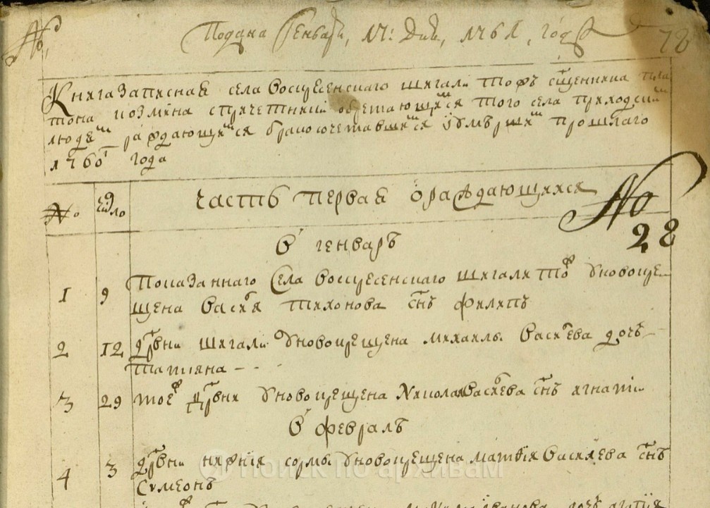 28. 17 числа. Деревни Шигали у новокрещена Прокофья Васильева сын Данила.