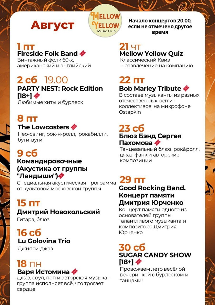 Совершенно непонятно, как так случилось, но завтра начинается август. Этим событием мы потрясены не менее, чем началом августа в прошлом году. Тем не менее, программа на этот сложный месяц у нас готова.Четыре премьеры, парочка звезд, немного разноплановой акустики, два бурлеска, два вечера с танцами и, конечно же, квиз от Кати Шалайчик. Встречайте!