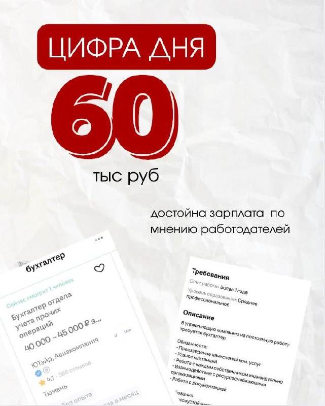 Бухгалтеры, кто в найме. Какая сейчас адекватная зп глвбуха или просто буха? вопрос из чата: Я ищу работу и просто в недоумении. При ставке 60, в описании вакансии написано что это достойная зарплата. Ну это же 2 к на день жизни. А что такое 2к сейчас?