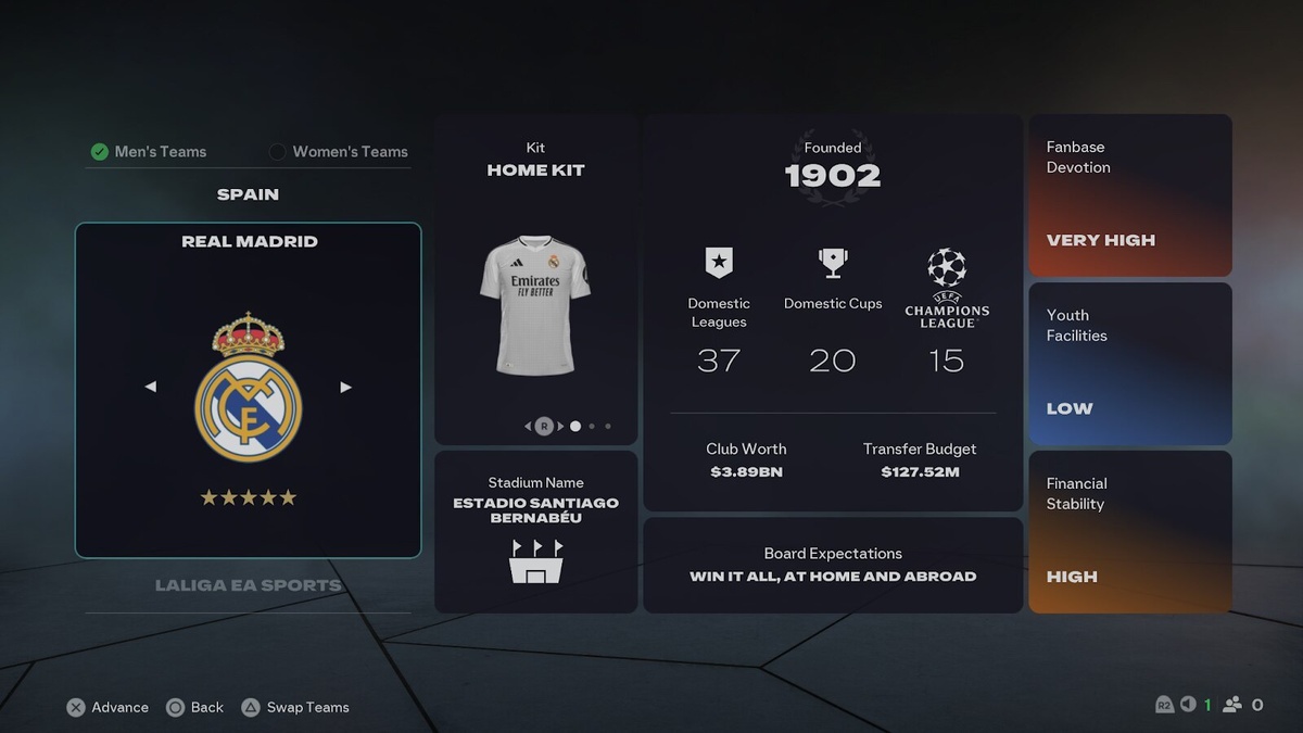 🆕 Обновлённое меню выбора команды в режиме карьеры FC26