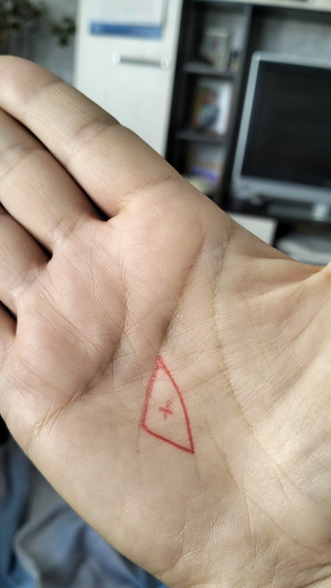 Сегодня расскажу вам простой, но работающий способ для привлечения денег. Деньги - это энергия! И они могут прийти из разных источников и в разными способами. Это может быть подарок, бонусы, кэшбэк, неожиданная премия и всё что угодно! Для того, чтобы активировать эту энергию возьмите ручку с красными чернилами или маркер. Затем на своей правой руке найдите треугольник, который образуется по линиям руки, и обведите его красным цветом. В центре можно поставить + как показано на рисунке Линии и размеры треугольника на правой руке у всех разные! Проговорите слова с верой "Моя денежная энергия увеличивается и приумножается". Также есть ещё способ. Если вы правша, то рисуете треугольник в середине ладони на левой руке , а если вы левша , то на правой. В центре треугольника также рисуйте + как показано на рисунке. Запускайте свою денежную энергию! Всё во благо и всем добра🤗 Для активации поставьте 👍напишите в комментариях "Мои доходы приумножаются! Да будет так! 108 на 27!" Всем сча