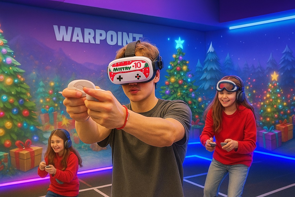 VR-клуб Warpoint предлагает семейные VR-карты, такие как «Рождество» и «Хэллоуин», которые создают уникальные гибридные зоны для командных