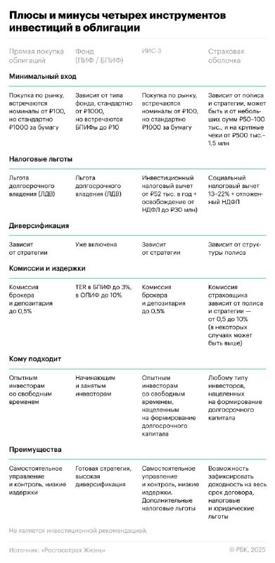 Ставка снижается пора набирать облигации в портфель. 4 способа инвестирова… Ставка снижается пора набирать облигации в портфель. 4 способа инвестирования в долговые бумаги со всеми плюсами и минусами В июле регулятор снизил ключевую ставку уже второй раз подряд, что положительно влияет на облигации с фиксированным купоном смягчение монетарной политики сопровождается снижением доходностей и ростом цен таких бумаг. На рынке есть 4 способа того, как можно купить облигации: 1️ через брокерский счет 2️ через ИИС 3️ через фонд на облигации (БПИФ или ОПИФ) 4️ через страховые продукты Инвестиционный аналитик СК «Росгосстрах Жизнь» Александр Журавлев подробно рассказал, сколько потенциального дохода могут «съесть» комиссии и налоги при разных видах покупки бондов, чем отличается инвестирование в облигации напрямую и через фонд или страховой полис, а также какой капитал нужен нужен, чтобы самостоятельно повторить портфель облигационного фонда Окно возможностей 4 способа заработать на о