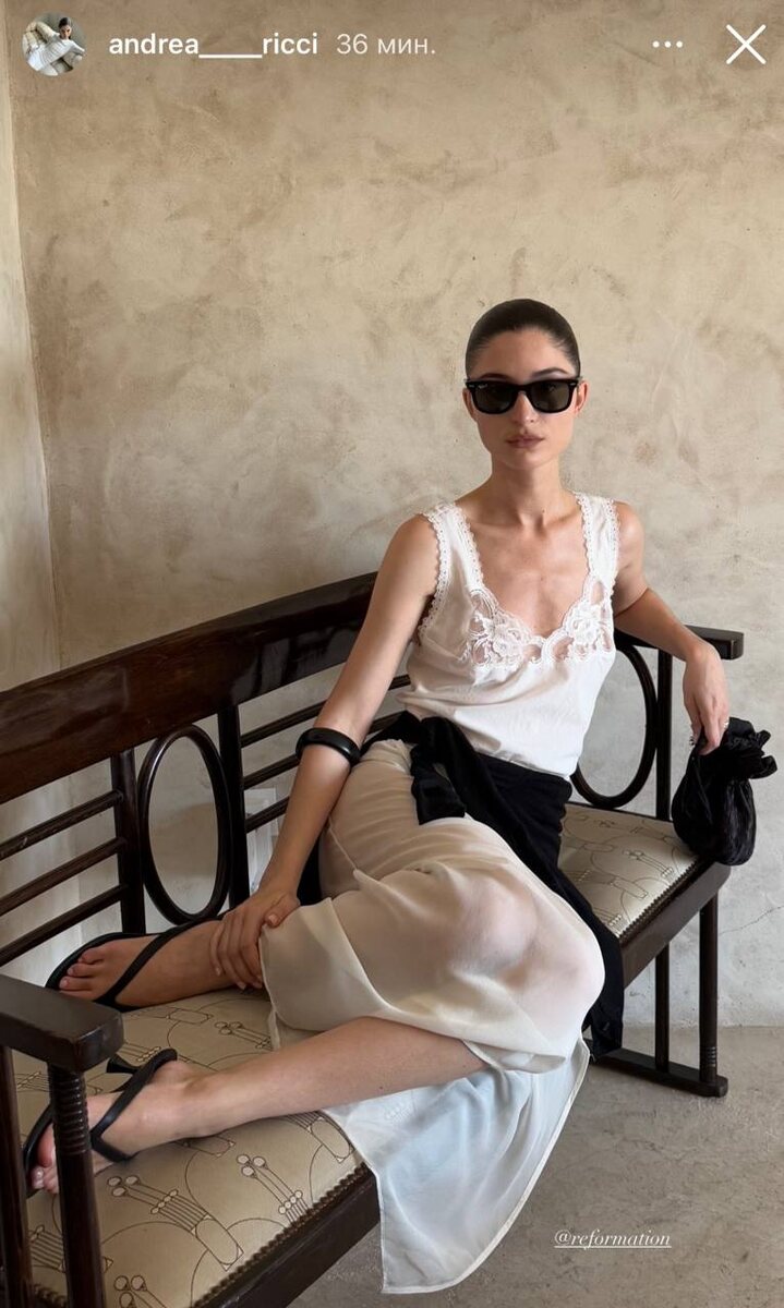 Кстати, удобно так носить лонгслив или кардиган, чтобы вечером накинуть. У нас уже после восьми термометр стремится к 20°. С кружевными и шёлковыми платьями выглядит очень хорошо. Как у Bottega Veneta, например