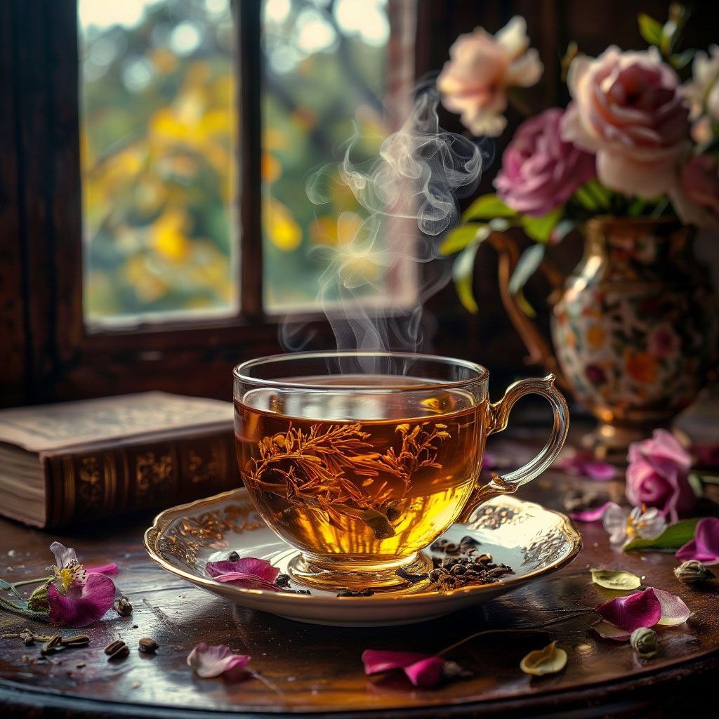 Чай с нотками: если бы барокко можно было заварить в чашке... Дорогие друзья! Представьте себе жаркий летний день. Воздух дрожит, как струна. И так хочется глотка свежести... А если эта свежесть – не просто вода, а целая музыкальная эпоха? Давайте помечтаем: каким вкусом и ароматом обладал бы чай, если бы его заварили из самой музыки барокко? В нашем терциевском волшебном чайнике сегодня – особенный сбор. Знакомьтесь: * Флейта – это цедра апельсина и лепестки розы. Яркая, солнечная, с легкой игривой кислинкой и тонким цветочным ароматом. Ее витиеватые мелодии – как кружева из цитрусовых цукатов в чашке. Оживляет, бодрит, заставляет улыбнуться! * Фагот – щепотка имбиря и душистый гвоздичный бутон. Теплый, немного терпкий, с глубоким "ворчливым" послевкусием и благородной пряностью. Это басовая линия, фундамент нашего музыкального напитка. Добавляет серьезности и согревает душу. * Клавесин (а у нас его роль часто играет фортепиано!) – это хрустальные льдинки или щербет. Чистый,