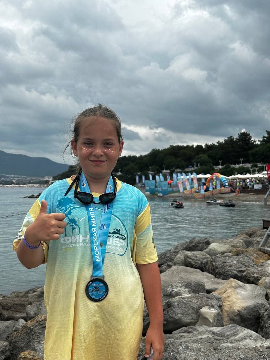 Редкие минуты с семьей провожу активно. Выехали на «Морскую Милю». В первый раз принял участие в заплыве.