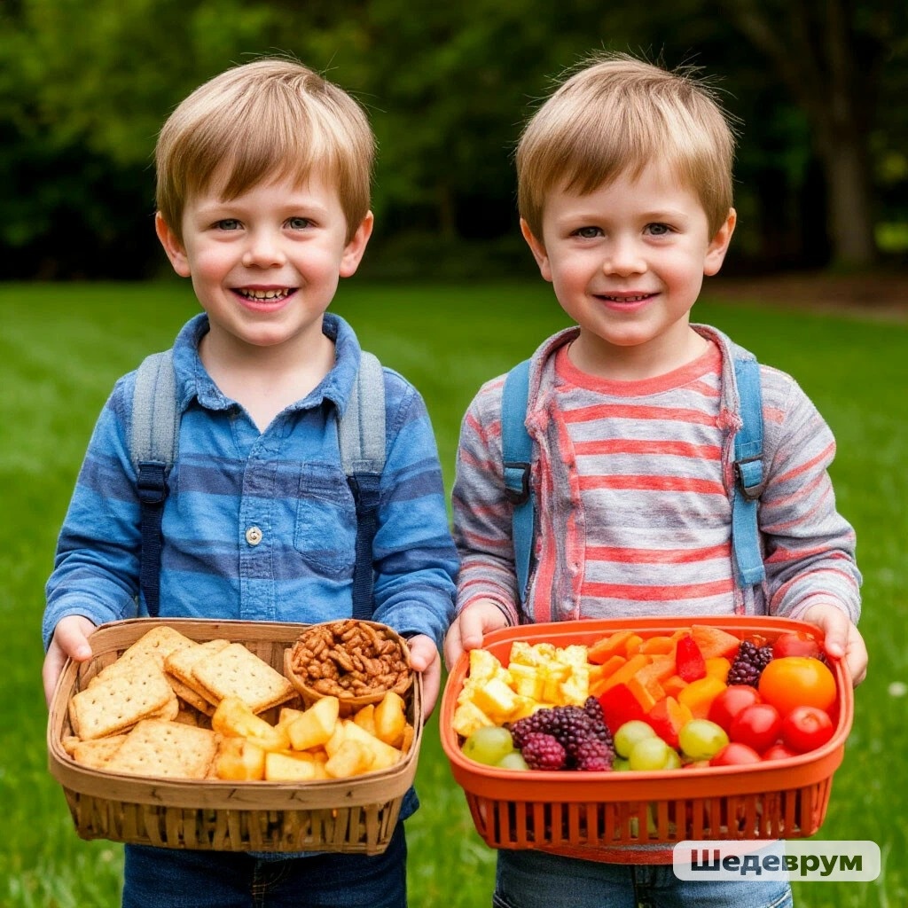 Если мы идём гулять с мальчишками на улицу, значит мне нужно приготовить целый пакет перекусов. Напомню,что у нас двойня, которым почти 2 годика. Пацаны едят немало. Но на улицу суп с кашей не возьмёшь. Еще и едят они не одно и тоже, разное им подавай. Итак, что же мы берем с собой на прогулку: Один мой любитель яблок, поэтому без яблок лучше мне из дома с ним не выходить. Беру целые или режу, если успеваю. Я не фанат подобного, но на прогулке они хороши. Дети их обожают 3. Пару кусочков черного Даниловского или Столичного хлеба. Один из двойни любит только его 4. Изюм и чернослив. Второй из двойни ест изюм и чернослив. Кладу в пакетик и он тихо сидит в коляске и ест его,пока мы перемещаемся с площадки на площадку. 5. Печенье. Печеньем стараюсь не злоупотреблять. Если не успеваю приготовить его сама дома , то покупаю без сахара. Даю иногда печенье Мария. Они его особо не едят и кормят им голубей и всю, мимо проходящую, живность. А что вы берете с собой на прогулку с детьми?