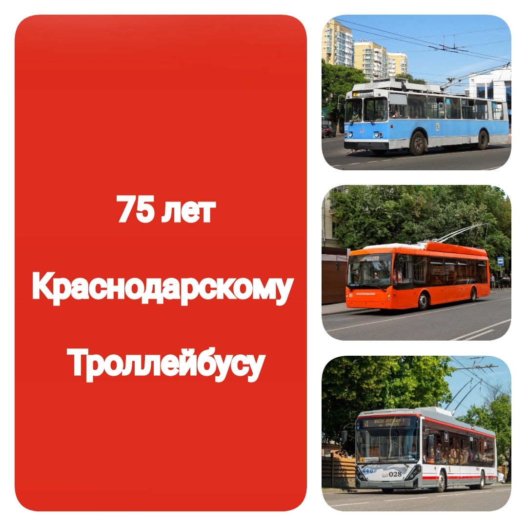 28 июля 2025 года исполнилось 75 лет Краснодарскому Троллейбусу. 28 июля 1950 года по улице имени Сталина от Дворца спорта Динамо до парка имени Горького был запущен первый троллейбусный маршрут движения осуществляли 8 троллейбусов МТБ 82Д. Троллейбусы МТБ 82Д сменили троллейбусы ЗиУ. В Краснодаре можно увидеть разные модификации выпущенные в разные годы отличающиеся друг от друга внешне, но по сути это одна и та же модель. На маршрутах Краснодарский троллейбус использовал систему из двух троллейбусов ЗиУ. Первый был основной, где размещалась кабина водителя и вся система управления с пассажирским салоном. Второй присоединялся к первому и использовался как прицеп с пассажирский салоном, в кабине которого стояла система дублирования с первого троллейбуса. Также в Краснодаре на маршрутах использовались трёхосный троллейбусы. В ХХI веке помимо троллейбусов ЗиУ сначала появились троллейбусы Башкирского Троллейбусного завода, затем троллейбусы Транс Альфа Авангард. С 2013 года эксплуатирую