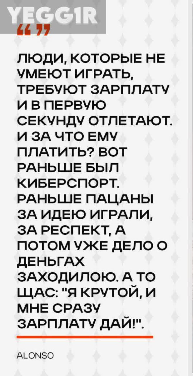 😔 Киберспорт меняется: раньше играли за идею, теперь — за деньги. 🤔 Что думаете о современных тенденциях? 👍 — Мда я вообще за бесплатно играю YEGG1R | ПОДПИСАТЬСЯ