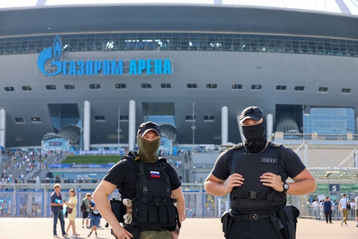 Более 300 сотрудников Росгвардии и полиции обеспечивают порядок у «Газпром Арены» в Петербурге