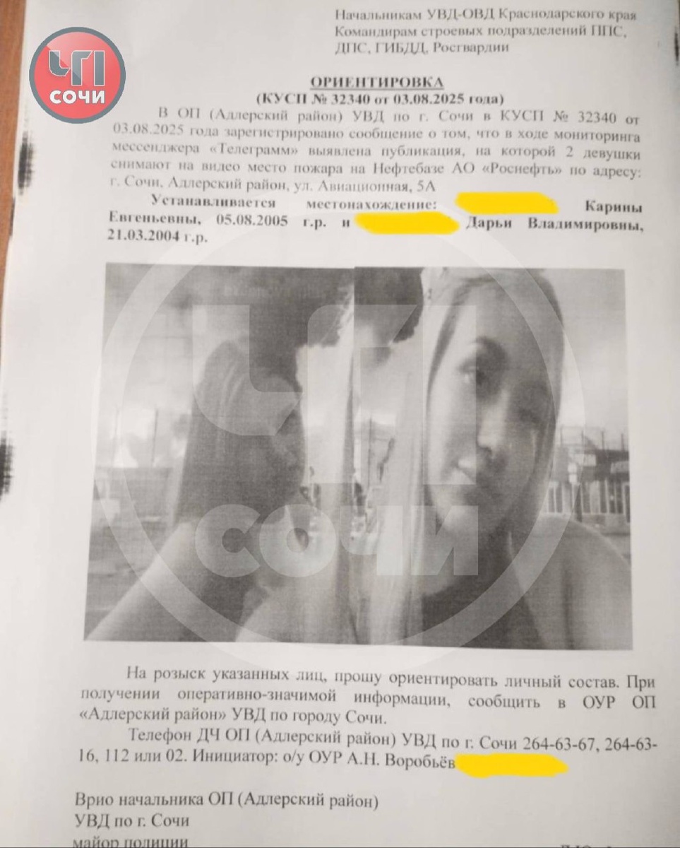 ⚡️Девушек, снявших видео у горящей нефтебазы в Сочи, задержали