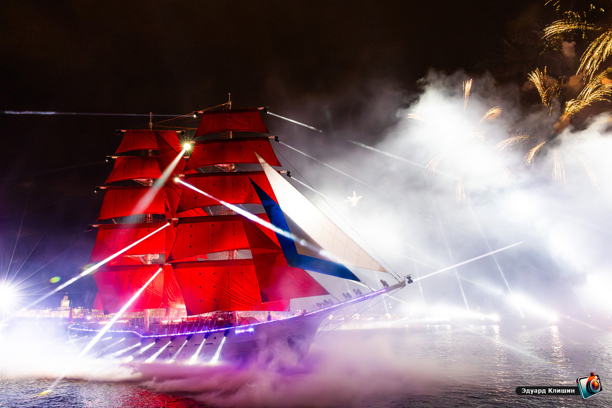 На мой взгляд, самая эффектная часть представления – прохождение по Неве знаменитого брига «Россия» с алыми парусами, озаренного бесчисленными огнями фейерверков. И при желании этот корабль можно увидеть своими глазами, даже не являясь выпускником – например, с Английской набережной. Петербуржцы неоднократно отмечали, что одним из самых оптимальных мест для свободного просмотра во время праздника является Адмиралтейская набережная: здесь бриг разворачивается и достаточно долго остается в поле зрения. А если не хочется толкаться с тысячами зрителей и ловить кадры между чьими-то головами, есть и план «Б» – генеральная репетиция накануне праздника. Пусть без салюта, но людей в разы меньше, а атмосфера не менее волшебна. Спасибо моей сестре Анне Клишиной за предоставленные фото