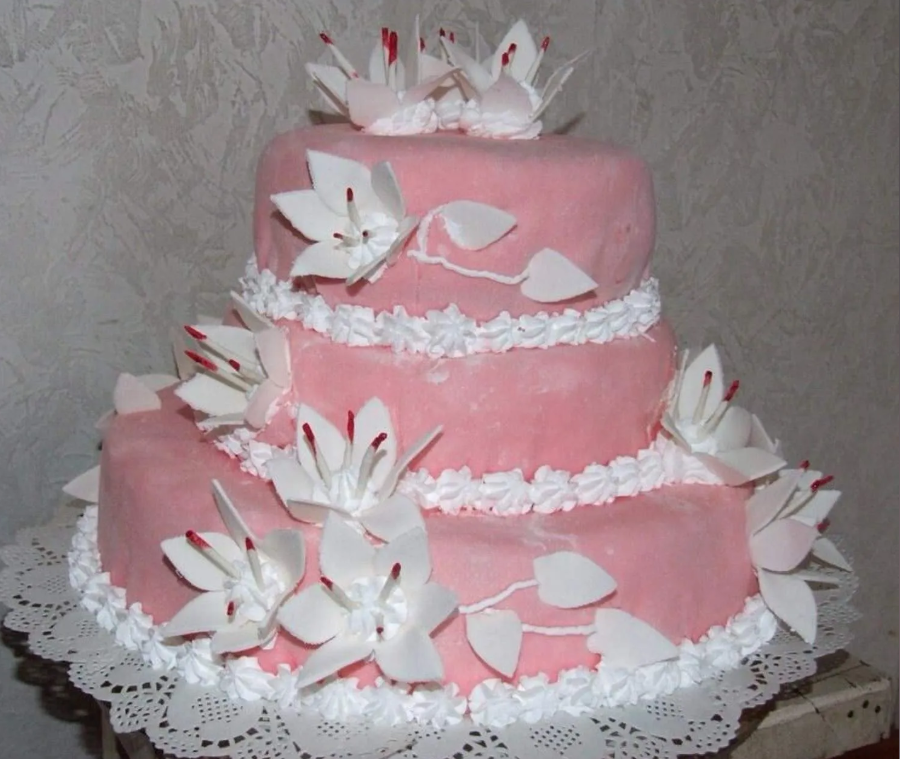Очередное свадебное происшествие с тортом, который готовила домашняя кондитер для дочери заказчицы. Договаривались на один торт, а получила совсем другой из категории ожидание/реальность. Торт, который они обговаривали я прикрепил снизу. А вот, что написала сама заказчица: Судя по сообщению вроде обошлось, спасло освещение ресторана. Это торт самый торт который они обговаривали, только без птичек. А вы как считаете насколько кондитер отошла от оригинала, напишите своё мнение в комментариях.. Публикации по теме: Понравилась статья в данном формате? Дайте знать и я буду делать больше подобных обзоров.