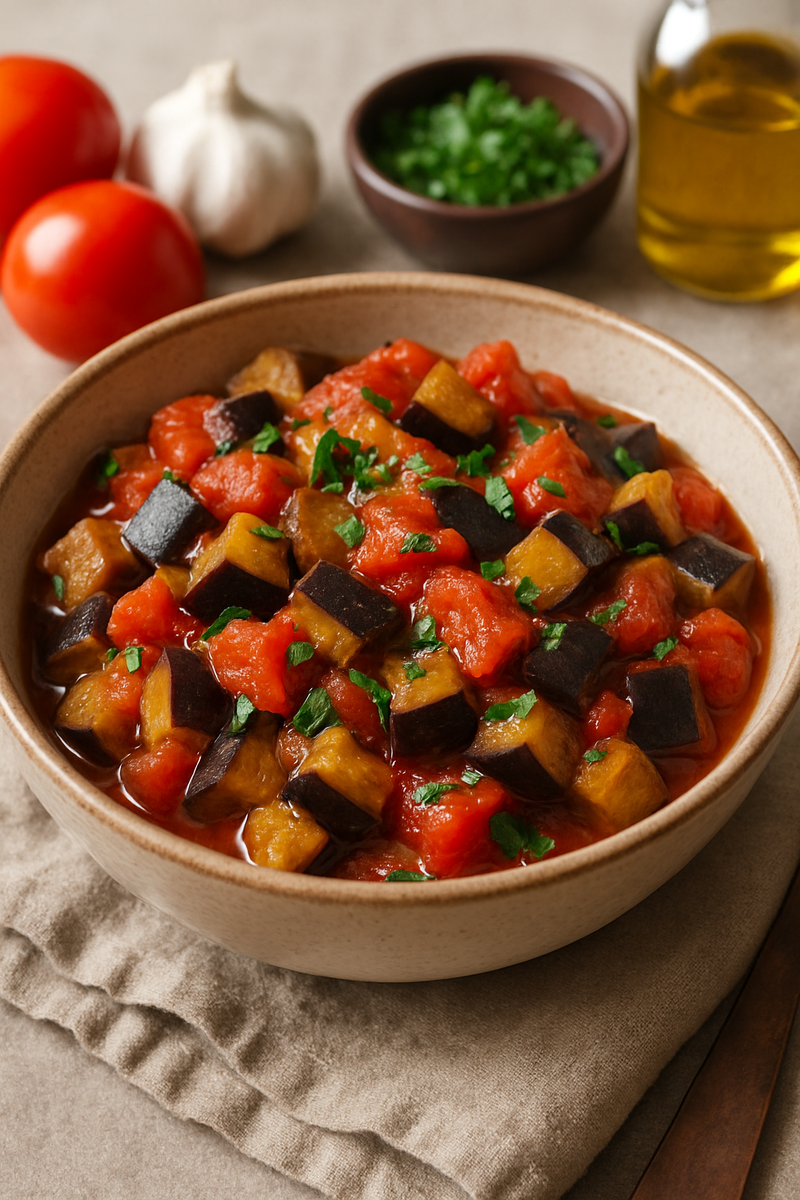 Тушёные баклажаны с помидорами и чесноком — блюдо, которое совмещает в себе простоту приготовления, доступные ингредиенты и насыщенный вкус. Оно подойдёт тем, кто ищет лёгкий, но сытный гарнир или полноценное вегетарианское основное блюдо. Также это отличный способ использовать сезонные овощи с максимальной пользой.