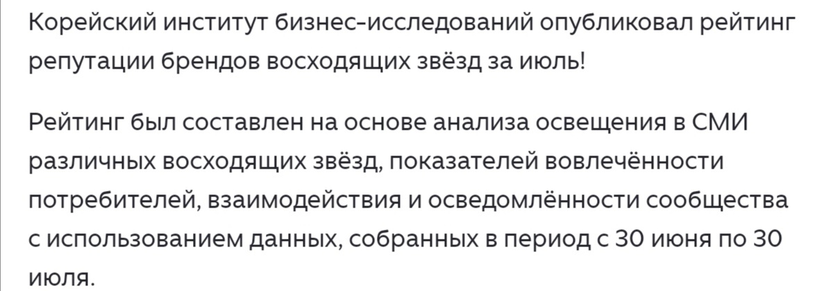 С некоторых пор я люблю Корейский институт бизнес исследований как родного)) Жду каждый его месячный рейтинг репутации брендов. Чем удивит в очередной раз? Посмотришь рейтинги за месяц, получишь дозу серотонина, вроде как и для здоровья полезно) Но иногда, даже на общем фоне тотальной дурости его рейтингов, бывают просто брЮллианты 😀 Вот как в июльском месяце, в рейтинге репутации брендов восходящих звезд. Спокойно отношусь к SKZ, но историю группы знаю, за их творчеством краем глаза наблюдаю. Группа сформирована в 2017 г. По состоянию на декабрь 2024 года, общий тираж корейских и японских альбомов Stray Kids насчитывает более 31 миллиона копий. И?... 21 место в рейтинге восходящих звёзд за июль! 🤣 Ребята, ну вы что, надо поднажать. Ещё лет 10 и перейдёте в звезды А пока вы не достойны для Института, сорри 😀 Чхве У Шик. 27 место. Ну всего-то парню 35 лет, да и первая роль была ещё в 2011г. 2014 - 19-й Пусанский Международный Кинофестиваль: Актер года (Освободи меня) 2020